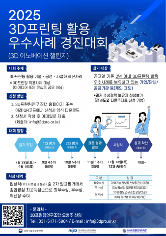 3DÇÁ¸°ÆÃ ±â¼úÀÇ »ê¾÷Àû È®»ê°ú Çõ½Å ¿ª·® °È¸¦ À§ÇÑ ¡®2025 3DÀ̳뺣ÀÌ¼Ç Ã§¸°Áö °æÁø´ëȸ¡¯ Âü°¡±â¾÷ ¸ðÁýÀÌ ½ÃÀ۵ƴÙ.