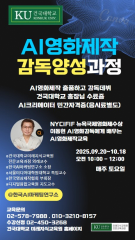 ÀÌ °úÁ¤Àº ¿µ»ó âÀÛ¿¡ °ü½É ÀÖ´Â ´ëÇлý, ÀϹÝÀÎ, °³ÀΠâÀÛÀÚ, AI ÄÜÅÙÃ÷ ¿¬±¸ÀÚ µî ´©±¸³ª Áö¿ø °¡´ÉÇϸç, âÀÛ¿¡ ´ëÇÑ ¿Á¤°ú ÇÔ²² Â÷¼¼´ë AI ¿µÈ °¨µ¶À¸·Î µµ¾àÇÒ ¼ö ÀÖ´Â ÀýÈ£ÀÇ ±âȸ°¡ µÉ °ÍÀÌ´Ù. ±³À° ½Åû ¹× ¹®ÀÇ´Â °Ç±¹´ëÇб³ ¹Ì·¡Áö½Ä±³À°¿ø ȨÆäÀÌÁö¿Í ¿Â¿ÀÇÁ¹Í½º¿¡¼ °¡´ÉÇÏ´Ù.