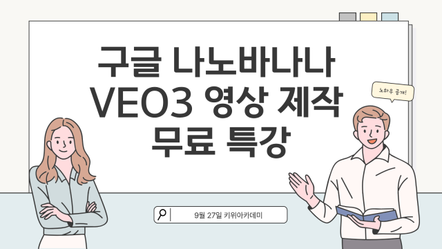 ŰÀ§¾ÆÄ«µ¥¹Ì°¡ 9¿ù 27ÀÏ(Åä) ¿ÀÈÄ 8½Ã 30ºÐ ¿Â¶óÀÎ ÁÜ(Zoom)¿¡¼ ¡®±¸±Û Veo3¿Í ³ª³ë¹Ù³ª³ª¸¦ Ȱ¿ëÇÑ ¹«·á AI ¿µ»ó Á¦ÀÛ Æ¯°¡¯À» ÁøÇàÇÑ´Ù. À̹ø °ÀÇ´Â ÄÜÅÙÃ÷¿Í È«º¸ ¿µ»óÀ» Á÷Á¢ Á¦ÀÛÇϰíÀÚ ÇÏ´Â °³ÀÎ, Á÷ÀåÀÎ, âÀÛÀÚµéÀ» À§ÇÑ ÇÁ·Î±×·¥ÀÌ´Ù.